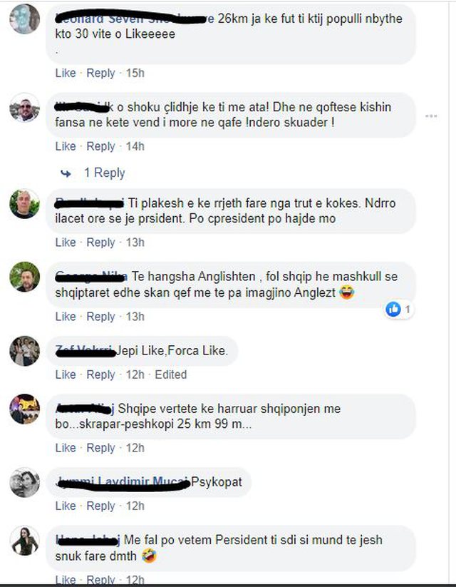 Meta ndryshe nga herët e tjera që kujdesej qe të ruante vetëm komentet pozitive të tipit “suksese president”, këtë radhë komentet negative siç duket kanë qenë të shumta dhe e pamundur per ta kthyer urrejtjen e qytetarëve si përgezimi i sekretarëve, këshillëtarve dhe ushtarëve lapanjoz, që e duartrokasin këtë “faqe të dytë e zezë në presidencë”, pas Sali Berishës. /Ekskluzive.al