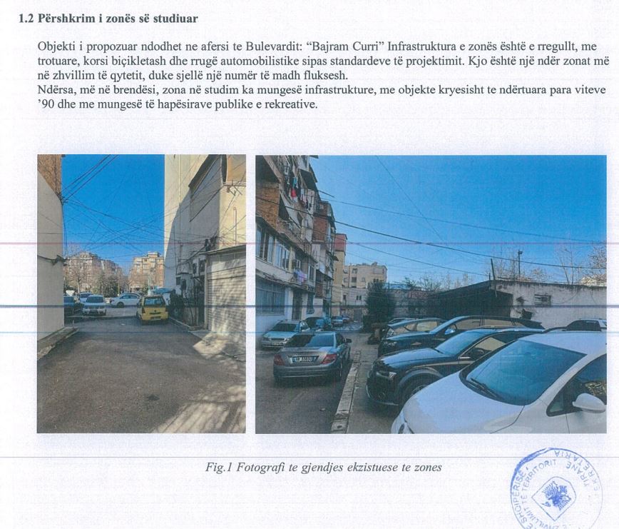 “Kjo është një ndër zonat më në zhvillim të qytetit, duke sjellë një numër të madh fluksesh. Ndërsa, më në brendësi, zona në studim ka mungesë infrastrukture, me objekte kryesisht te ndërtuara para viteve ‘90 dhe me mungesë të hapësirave publike e rekreative” shkruhet çuditërisht në dokumente.