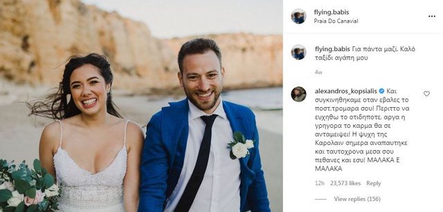 Nuk priti më shumë se 4 ditë për të vazhduar skenarin e përgatitur të bashkëshortit perfekt, dhe në rrjetet sociale Charalambos postoi një fotografi të të dyve, dorë për dore, të buzëqeshur në ditën më të bukur të jetës.