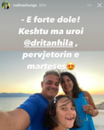 Ndërsa Rudina shpërndau urimin e Dritanit me një foto familjare. Kujtojmë se ata janë prindër të një vajze, të quajtur Alana.