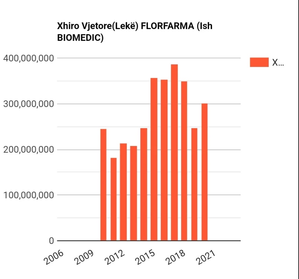 Kompania Florfarma nisi të rrisë xhiron vjetore kur iu fut tenderave pas ardhjes në pushtet të Rilindjes, duke arritur kulmin vitet e fundit, tregues ky i një skeme klienteliste dhe korrupsioni në shëndetësi, dega më e lakuar e qeverisjes për koncensione dhe tendera korruptivë, shpërdorime, skema mashtrimi etj.