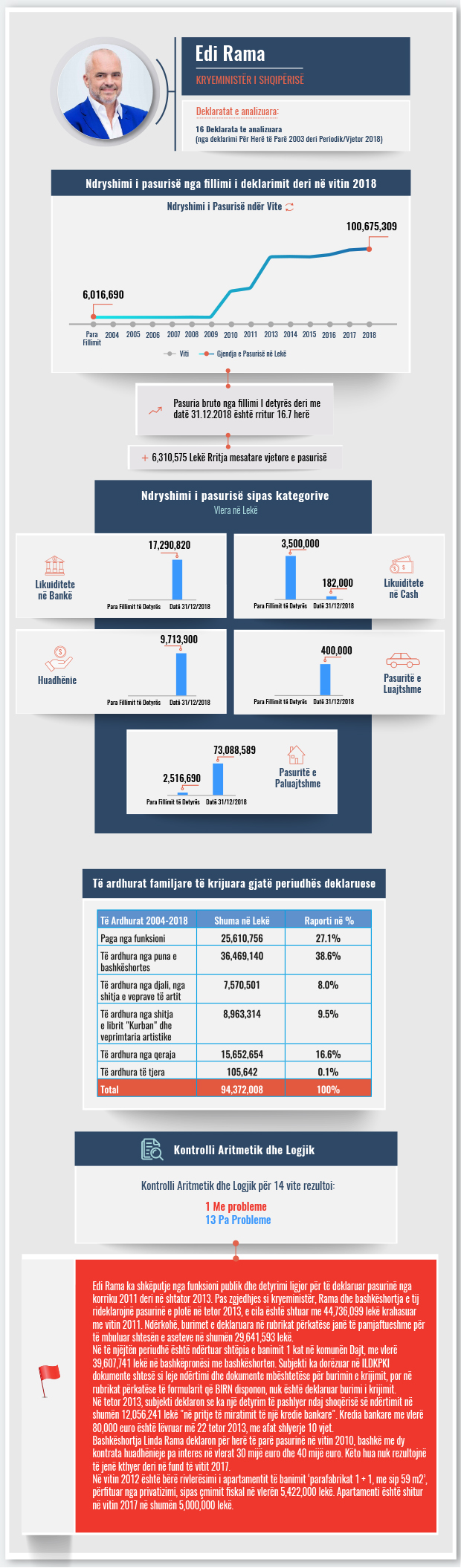 Ky raport u prodhua nga BIRN pas administrimit të deklaratave të pasurisë së kryeministrit Edi Rama nga Inspektoriati i Lartë i Deklarimit dhe Kontrollit të Pasurive dhe Konfliktit të Interesit, ILDKPKI. Ai ka për qëllim bërjen e transparencës mbi pasuritë e anëtarëve të Këshillit të Ministrave gjatë viteve 2013-2020.