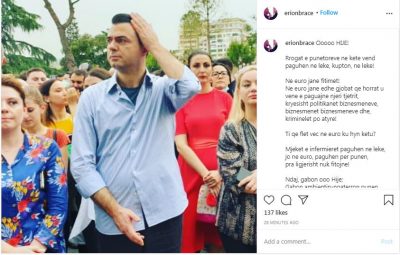 Përmes një postimi në rrjetet sociale, Braçe shkruan se rrogat e punëtorëve në vendin tonë paguhen në lekë dhe jo në euro.