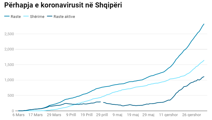 Shqipëria numëroi 67 raste të reja gjatë 24 orëve të fundit, një shifër më e ulët se sa dy ditët e mëparshme. Numri i të shëruarve ishte 45, gjë që do të thotë se numri i personave aktualisht bartës të virusit u rrit më tej në 1108 vetë, shifra më e lartë e regjistruar deri më sot.