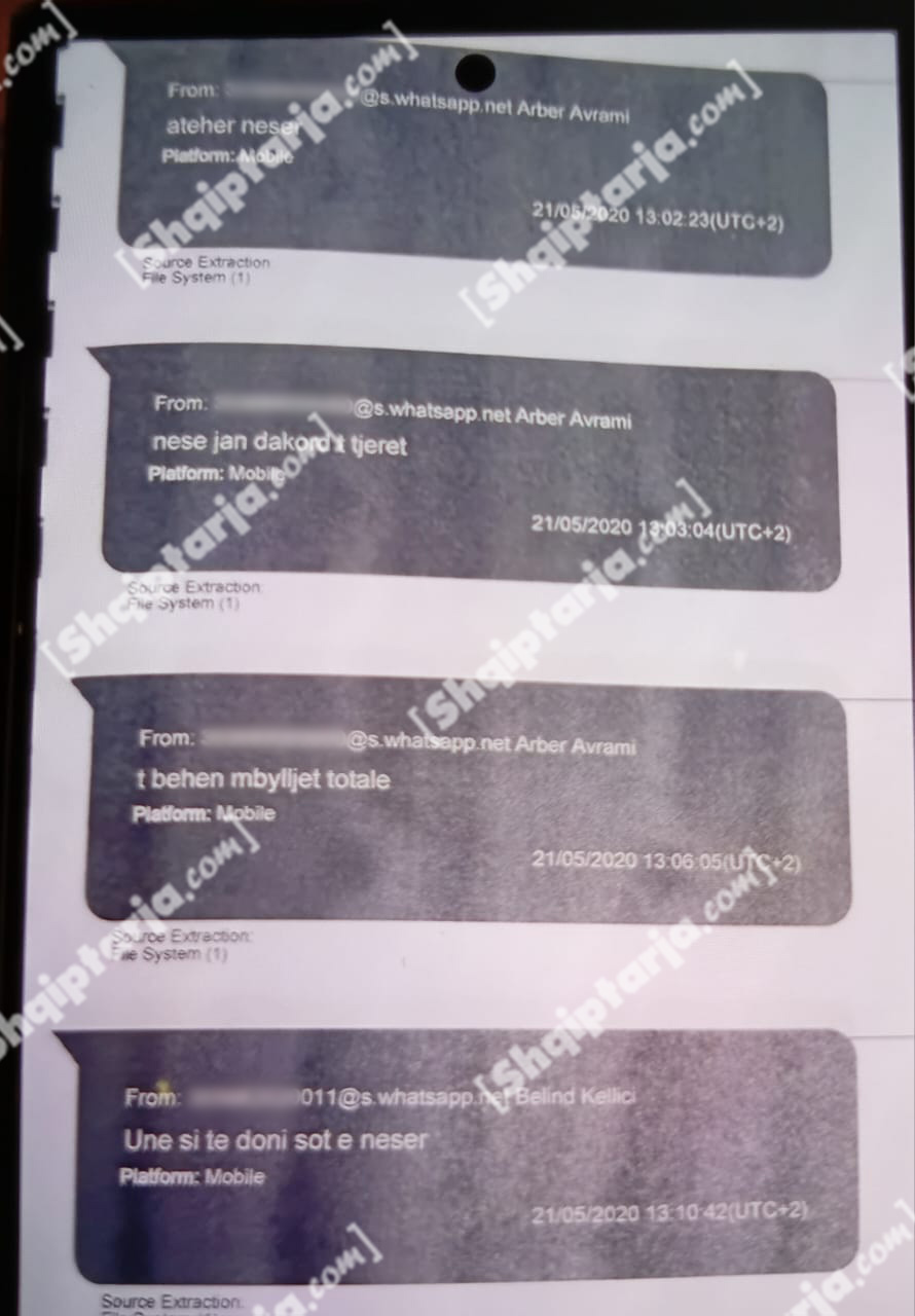 Këto komunikime i përkasin datave 19 maj dhe 21 maj 2020. Janë siguruar nga screenshot të zbuluara në telefonat e drejtorëve nën varësi të Ministrisë së Infrastrukturës dhe Energjisë, të sekuestruar në kuadër të hetimeve ndaj ministres Belinda Balluku dhe disa vartësve të saj.