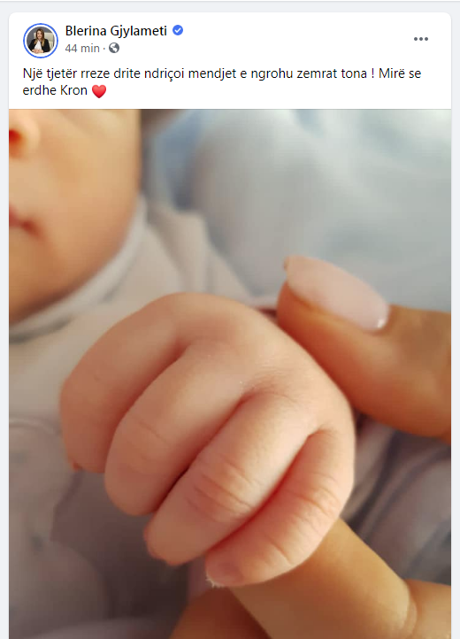 “Një tjetër rreze drite ndriçoi mendjet e ngrohu zemrat tona! Mirë se erdhe Kron”, ka shkruar deputetja e PS-së krahas fotos ku shfaqet dora e vogël e djalit.