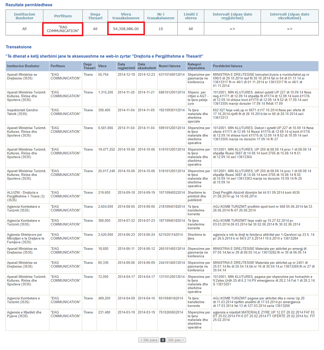 Nëse nuk e mbani mend ju a kujtojmë ne! Në atë kohë, plasi një debat i madh, një kompani “fantazëm”, sepse si e tillë edhe u zhduk më pas, arriti të siguroj një shumë të padëgjuar ndonjëherë, plot 394 milion lekë vetëm gjatë muajit tetor të vitit 2014, nga Ministria e Turizmit Kulturës Rinisë dhe Sporteve, e drejtuar asaj kohe nga Mirela Kumbaro.