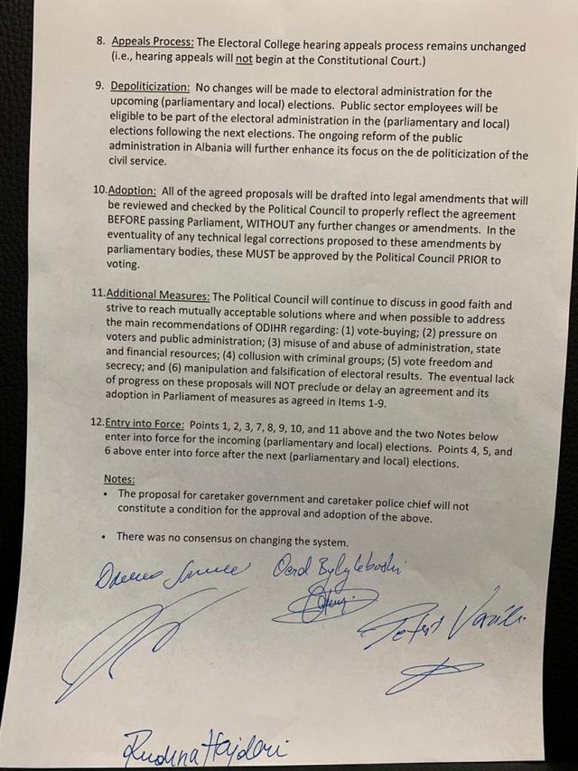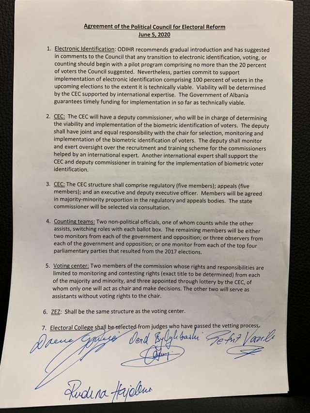 DOKUMENTI/ Kjo është marrëveshja për Reformën Zgjedhore që firmosën palët mbrëmjen e sotme