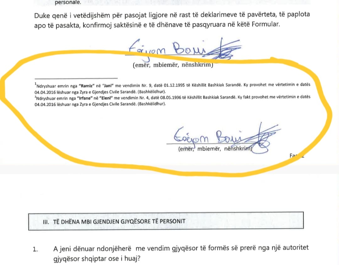 Erjon Bani i biri i Janit dhe Elenit po trondit politikën e Shqipërisë duke vënë drejtësi në emër të Republikës së Shqipërisë, paçka se në Greqi në rekordet e shtetit fqinj shënohet Érion Báni o gios tou Tzáni kai tis Elénis.
