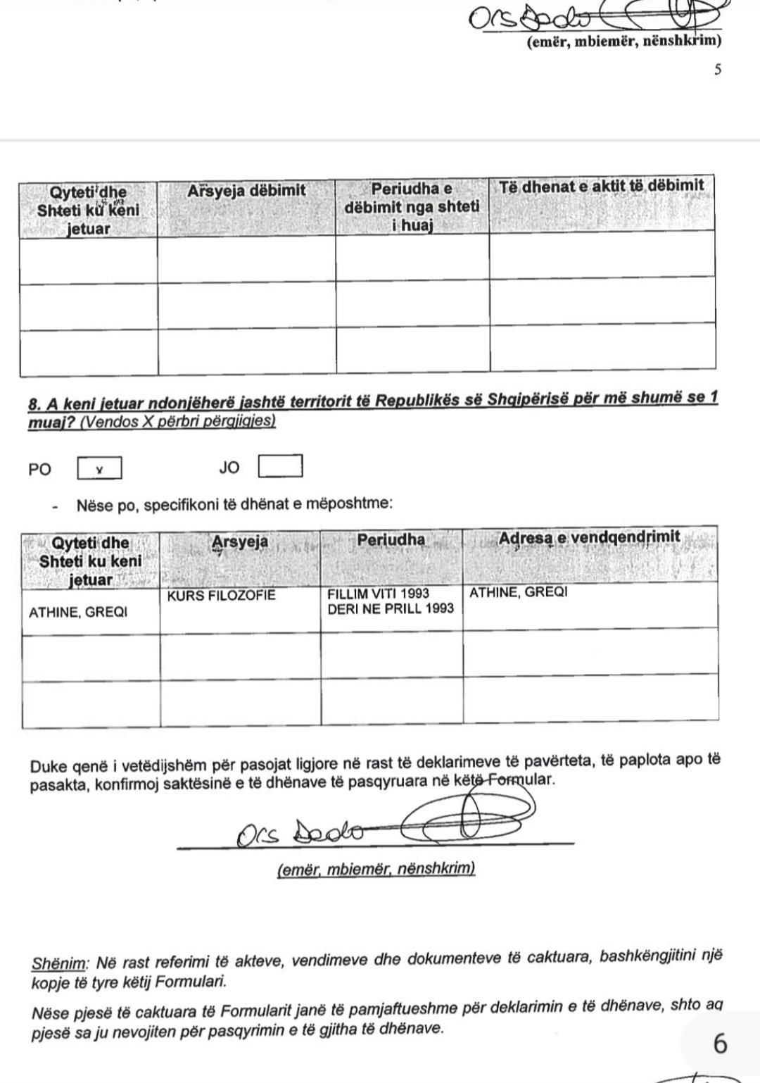 I gjithë ky zinxhirë skandalesh ndoshta nuk do të tërhiqte vëmendjen. Por, në vetedeklarimin e tij, Ols Dado rezulton se ka pasur një ndërprerje tre mujore nga fakulteti me natyre meditative. Pas dështimit për t’u bërë violinist, Ols Dado ka shkuar në Greqi për të bërë një kurs për Filozof. Pra, nuk ka shkuar për të vjelë ullinj si Adriatik Llala dhe Gjin Gjoni, por për filozofi! Pasi mbaroi kursin, me bagazh Aristotelik me vete, u kthye të vijojë shkollën për jurist.