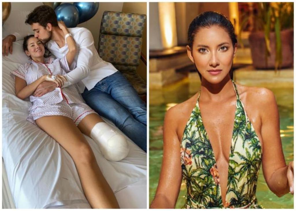 Një bukuroshe kolumbiane që ka konkuruar në Miss Universe ka humbur këmbën e saj pas komplikacioneve të një operacioni për të hequr në masë në barkun e saj.