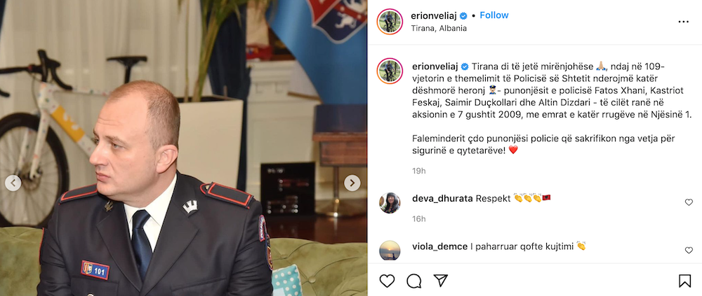 Tani për t’iu kthyer debatit pse Veliaj është Klloun dhe Mashtruesi Publik Nr. 1, jo më larg se dje, në zyrën e kryetarit të bashkisë, gjatë një takimi ku u nderuan emrat e disa policëve të rënë në detyrë, krejt papritur, në fotot e publikuara nga Erion Veliaj, shfaqet një biçikletë e mbështetur në mur prapa shpinës së një efektivi që ndodhej në takim.