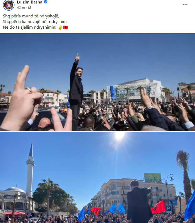 Entuziazmin nga takimi në Kavajë, Basha e ka përçuar dhe përmes një postimi në rrjete sociale, ku thekson se ka ardhur koha që Shqipëria të ndryshojë dhe se PD do të jetë ajo që do e arrijë këtë gjë.