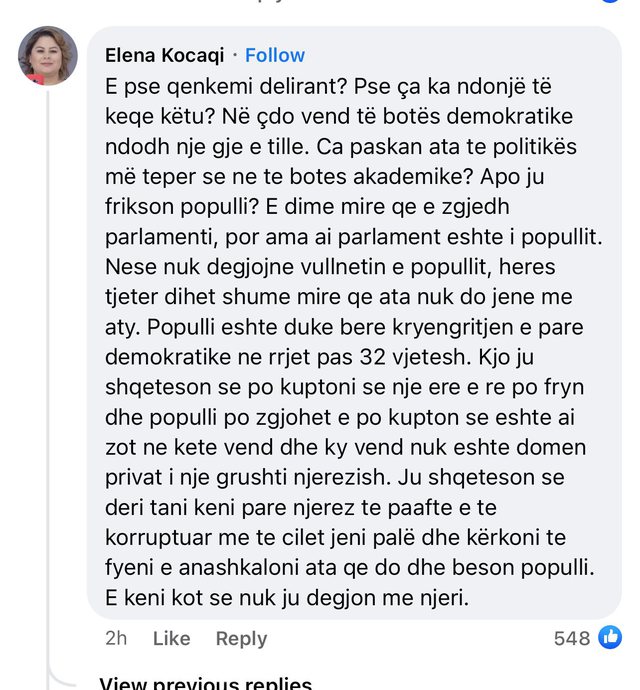 Më poshtë po përcjellim reagimin e saj të plotë:
