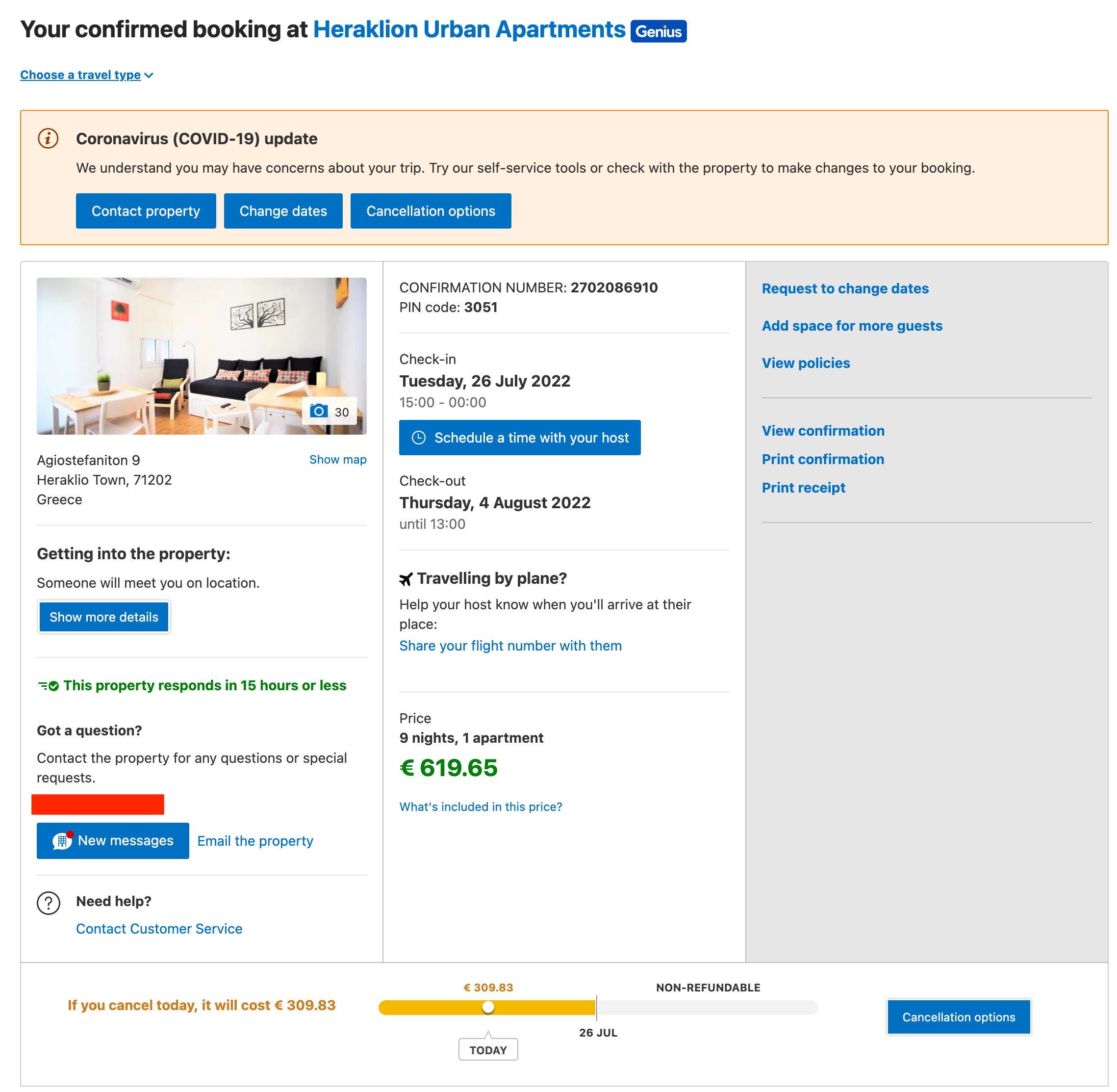 Udhëtarët veç biletave, për të cilat nuk janë rimbursuar ende nga kompania greke, edhe pse e kanë kërkuar kthimin e pagesës menjëherë pas anullimit të fluturimit, për të parë një alternative tjetër për të mbërritur në ishullin grek, tregojnë se kanë paguar edhe hotelirinë për të cilin nuk mund të rimbursohen plotësisht, pasi e kapën në ofertë. Në rast anullimi të prenotimit të hotelit deri para datës 26 korrik, ata mund të marrin mbrapsht vetëm gjysmën e pagesës së dhënë me vlerë 310 euro, pas kësaj date asgjë nga shuma e paguar nuk mund të rimbursohet.