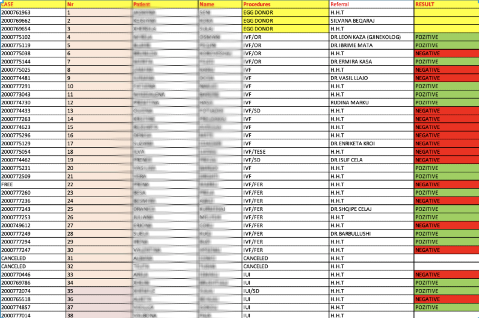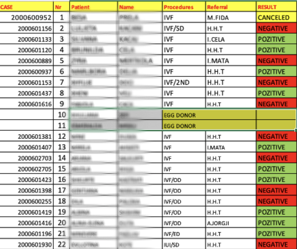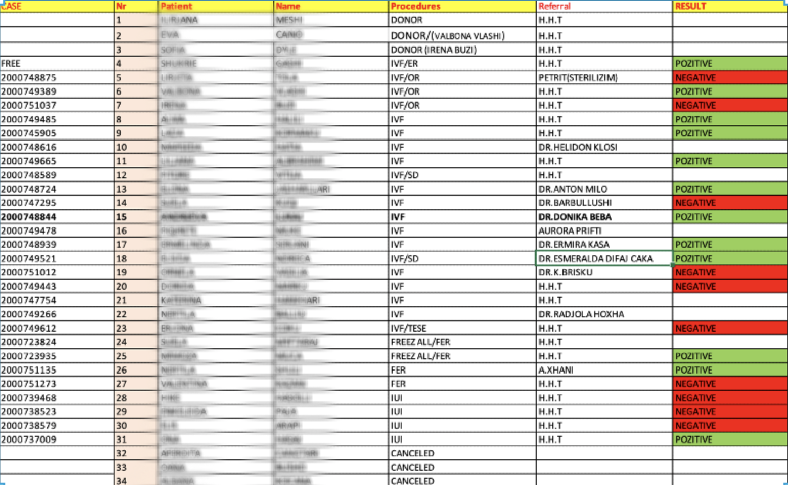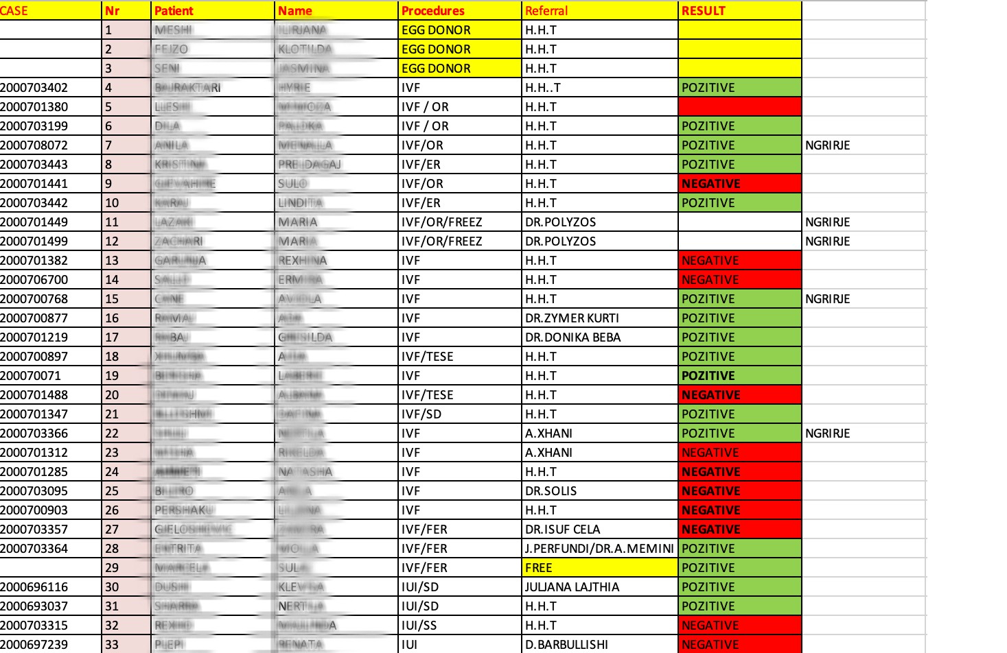 Në faksimile e siguruara nga ekskluzive.al, janë disa muaj në të cilën pasqyrohen regjistrat periodik të Klinikës së Fertilitetit pranë “Spitalit Hygeia”, ku fatkeqësisht nuk kanë mundur të ngelin shtatëzanë mbi 50% përqind të grave që i janë nënshtruar procedurës. Spitali gënjen kur thotë se procedurat e saj janë 75% të sakta, ku dokumentat flasin të kundërtën dhe këtë spitali e di shumë mirë pasi i ka të njëjta të dhëna, sikurse janë paraqitur prej nesh.