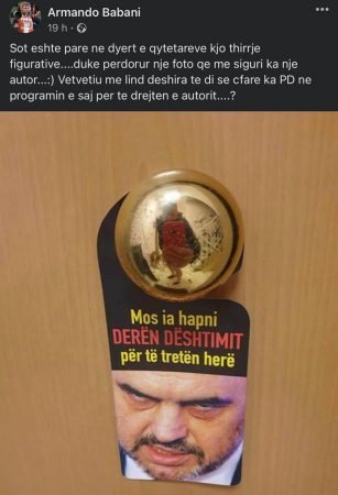Vetvetiu më lind dëshira të di se çfarë ka PD në programin e saj për të drejtën e autorit….?”, shkruan Babani.