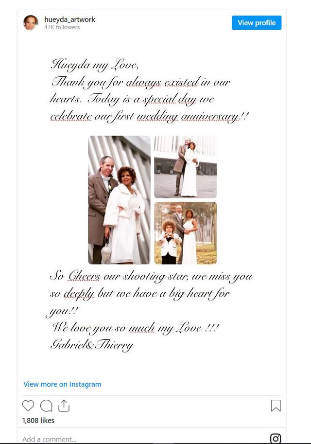 Me një postim në rrjetet sociale, Thierry, bashkëshorti i Hueyedës ka zgjedhur të përkujtojë përvjetorin e tyre të parë të martesës.