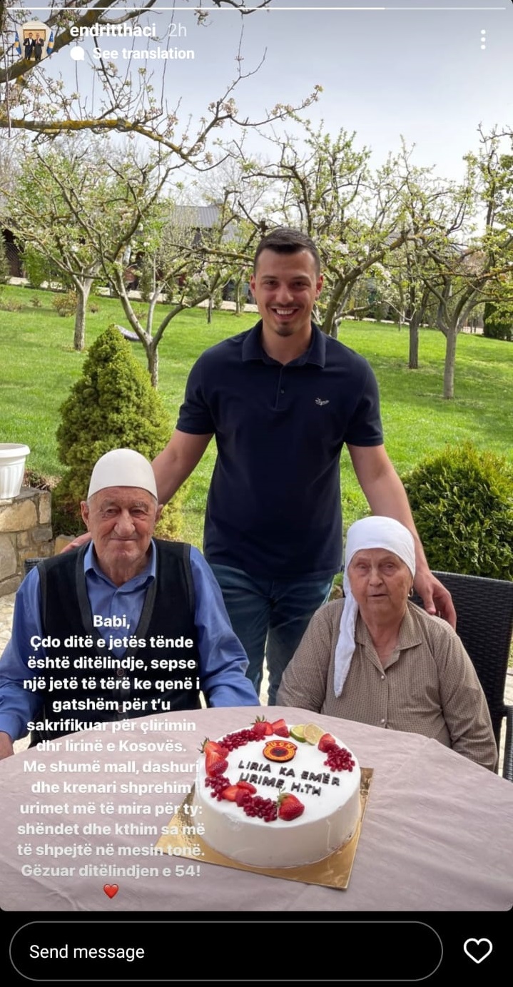 Endrit Thaçi, djali i ish presidentit të Kosovës ka uruar ditëlindjen e të atit, i cili ndodhet në qendrën e paraburgimit në Hagë. Me anë të një postimi në rrjete sociale, Endrit Thaçi pozon me gjyshërit dhe shkruan se ndjen mall për të duke shtuar se është krenar pasi ka sakrifikuar për çlirimin dhe lirinë e Kosovës.