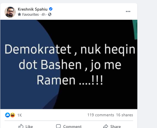 “Demokratët nuk heqin dot Bashën, e jo më Ramën…”, shkruan Spahiu.