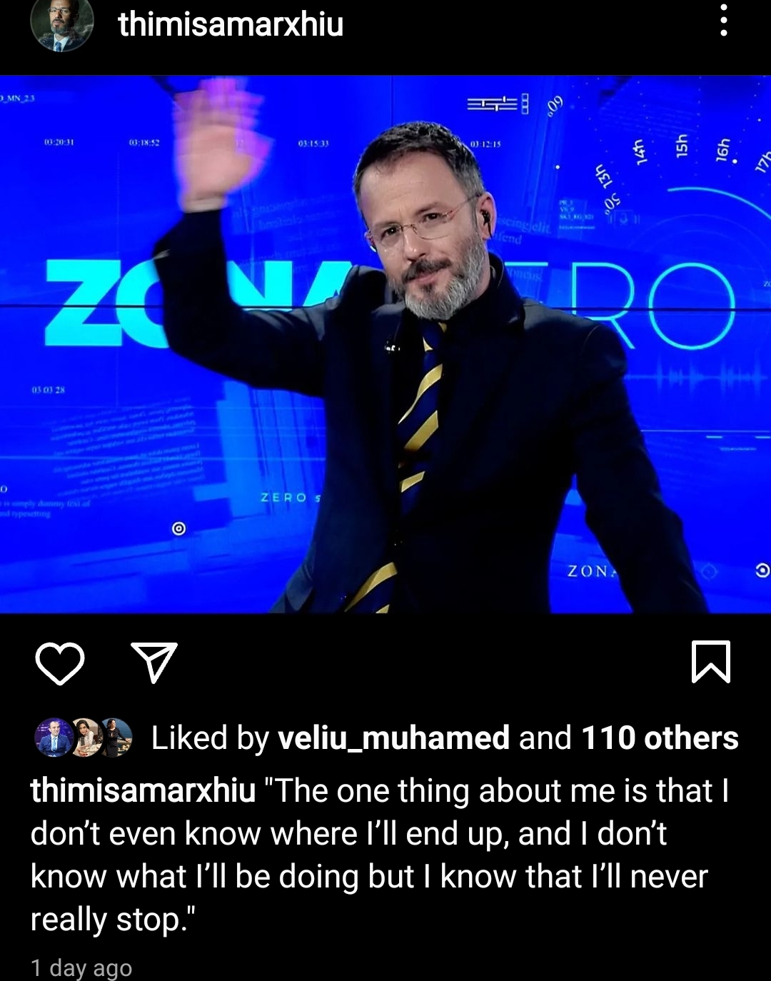 Nga nesër Samarxhiu nuk do jetë më në Top News, në ‘Zona Zero’. Në fakt me anë të një postimi në Instagram, ka lënë të kuptohet këtë tërheqje teksa shkruan: