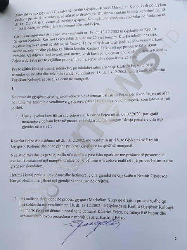“Kuqo i njohur për skandale në fushën e drejtesise. Gjyqtari po zvarrit çështjen për një çështje pafajësie që ka 18 vjet qe vërtitet nëpër gjykata.