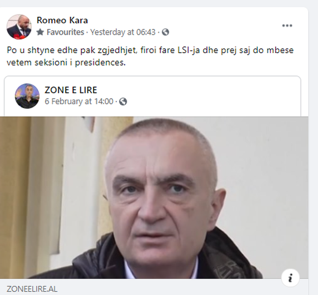 Ditën e shtunë Presidenti Ilir Meta u pyet nga gazetarët nëse do të shtyhet data e zgjedhjeve në vend për shkak të situatës së COVID-19. Meta u shpreh i prerë se data e zgjedhjeve nuk do të shtyhet në asnjë mënyrë. Nisur nga kjo deklaratë e Presidentit Meta ka ardhur reagimi i juristit Romeo Kara. Përmes një postimi në rrjetet sociale, Kara shkruan se po u shtynë edhe pak zgjedhjet LSI-ja firoi fare.
