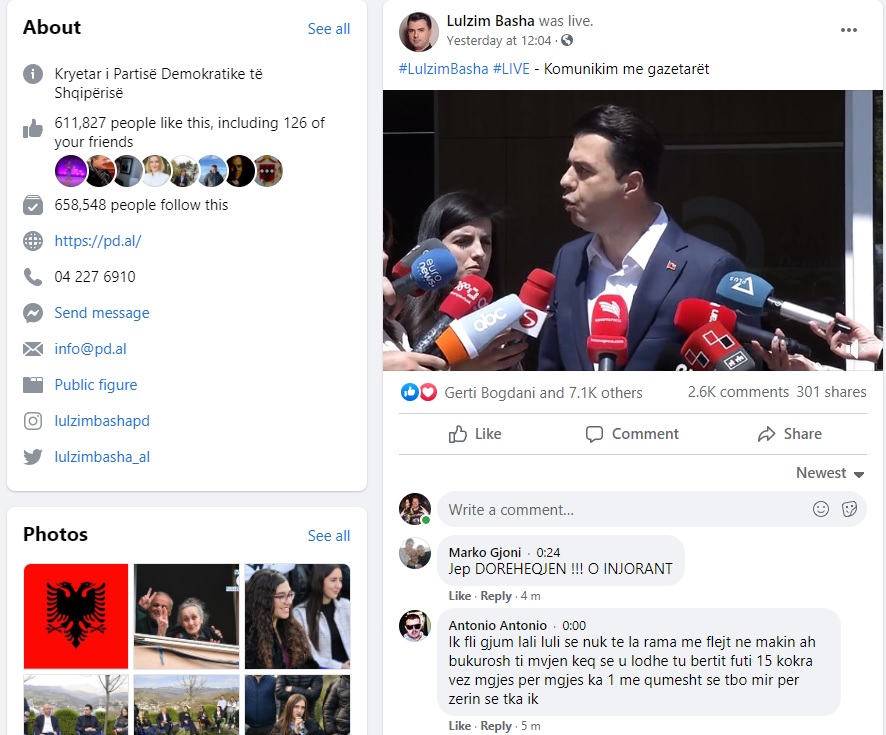 Teksa mbushen më shumë se 24 orë nga reagimi i fundit i Bashës në Facebook, komentet e demokratëve të zhgënjyer kanë arritur në disa mijëra.