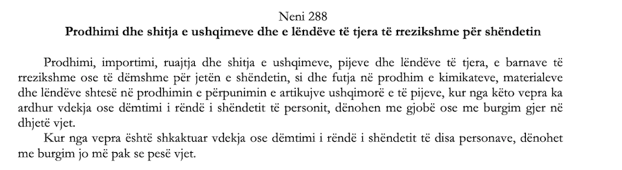 Mirëpo detyrim i saj ligjor, është ta gjobisë jo simbolikisht me 1 milionë të vjetra, por sipas ligjit me 30-50 milionë lekë; dhe t’i bllokojë përgjithnjë aktivitetin kësaj firme e ta kallëzojë penalisht, për krim ushqimor sipas neneve 288 dhe 288/C të Kodit Penal.