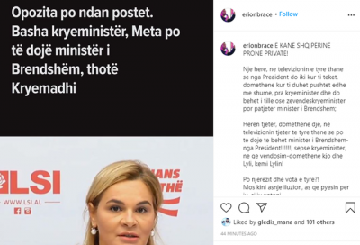 Përmes një postimi në rrjetet sociale Braçe shkruan me ironi se Kryemadhi dhe Meta e kanë private Shqipërinë dhe veç ata kanë lindur për të kaluar me të ndenjura nga një karrige në tjetrën.