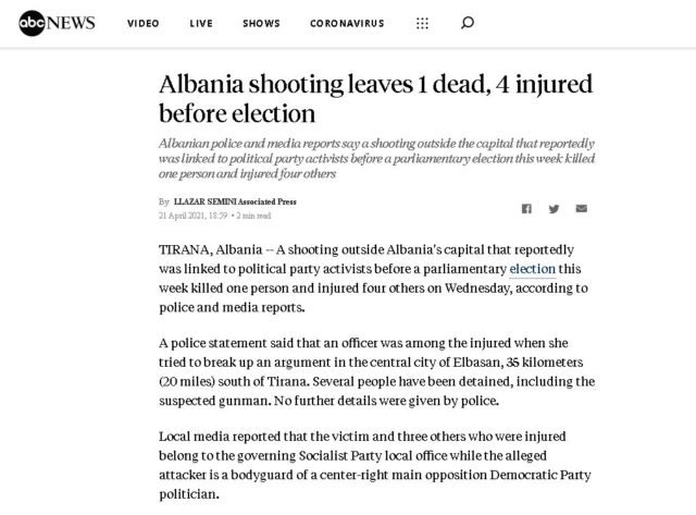 Mediat e huaja shkuajnë në lidhje me këtë ngjarje të cilat theksojnë faktin se vrasja e 56 vjeçarit ka ndodhur vetëm 4 ditë para zgjedhjeve paralamentare që do të zhvillohen me 25 prill në Shqipëri.