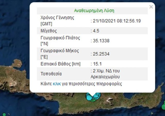 Megjithatë, nga të dhënat paraprake nuk raportohet për dëme në njerëz përveç disa çarjeve në banesat e vjetra. Tërmeti i sotëm ndodh pas atij më të fuqishëm të shtatorit, ku Kreta u goditi nga një lëkundje me magnitudë 5.8 të shkallës Rihter.