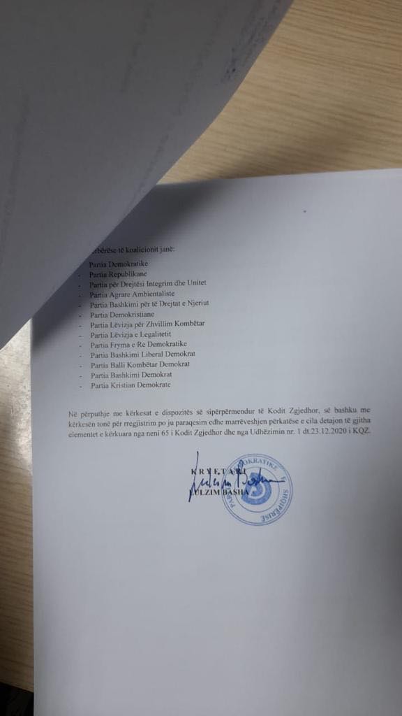 Fill pas presionit amerikan, Basha e ka hequr nga koalicioni opozitar këtë parti, duke dorëzuar në KQZ një listë me 13 parti, koalicion të cilin e kanë pagëzuar me emrin ‘Partia Demokratike-Aleanca për Ndryshim’.