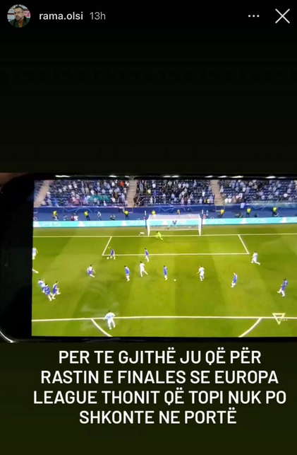 “Për të gjithë ju që për rastin e finales së Europa League, thonit që topi nuk po shkonte në rrjetë”, shkruan ai duke lënë të nënkuptohet se një tjetër rast i ngjashëm me të Belicës, nuk u dha mbrëmë penallti nga dhoma e VAR-it
