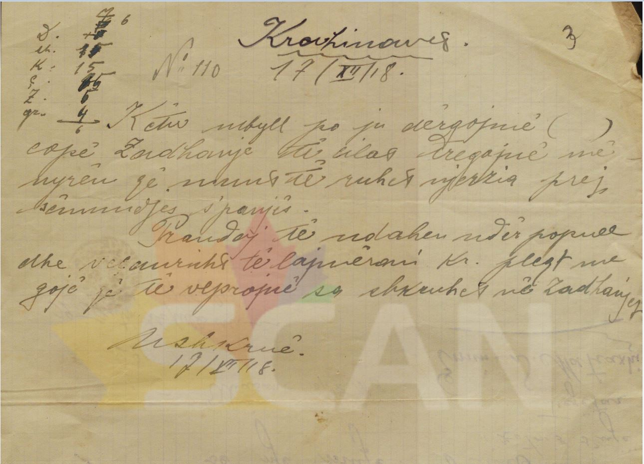 “Duhet të bani hetimet e nevojshme dhe të na lajmëroni se prej punëtorëve dërguemë në rrugë ose tu ardh prej rruge në shtëpi të tynë, sa vetë kanë vdekun deri tani në rrugë? Të bani një listë duke treguar emnin, mbiemnin si dhe katundin” shkruhet në shkresën që mban datën 22 gusht 1918 dhe firmën e nënprefektit.