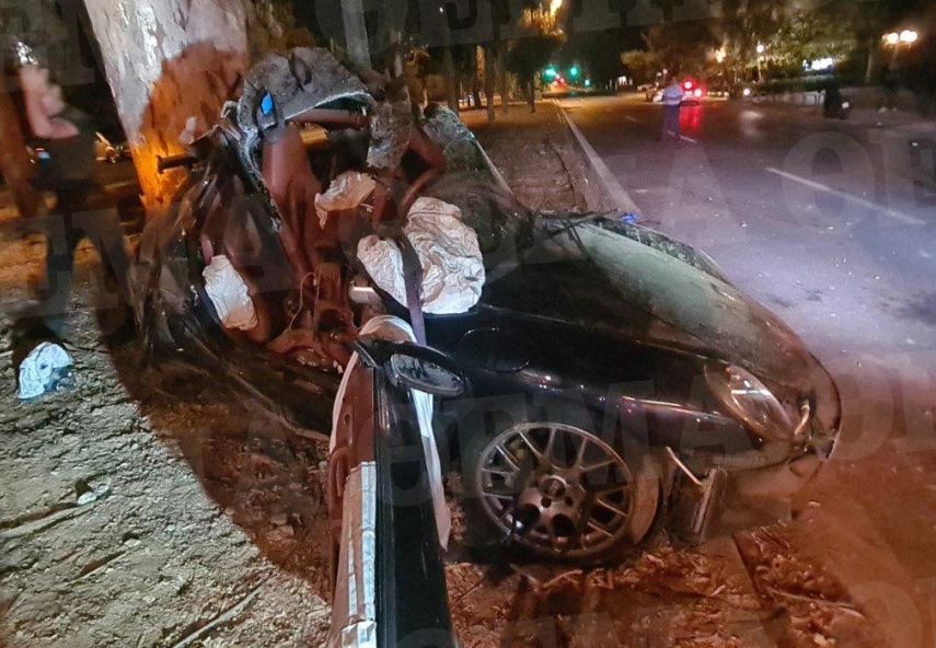 Pamjet e aksidentit janë me të vërtet rrëqethëse. Makina, sikur të ishte karton pasi është përplasur me një shtyllë nga shpejtësia e madhe është palosur literalisht.