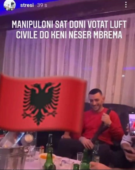 Një prej mbështetësve të saj, Arkimed Lushaj, i njohur ndryshe edhe si Stresi, ka kërcënuar se nga nesër mbrëma në Shqipëri nis lufta civile.