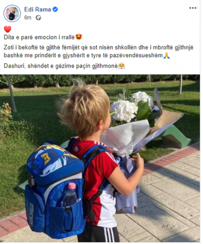 I emocionuar nga ky moment, Rama ka publikuar në rrjetet sociale një foto të të birit që e shoqëron me një urim për të gjithë fëmijët që fillojnë sot shkollën.